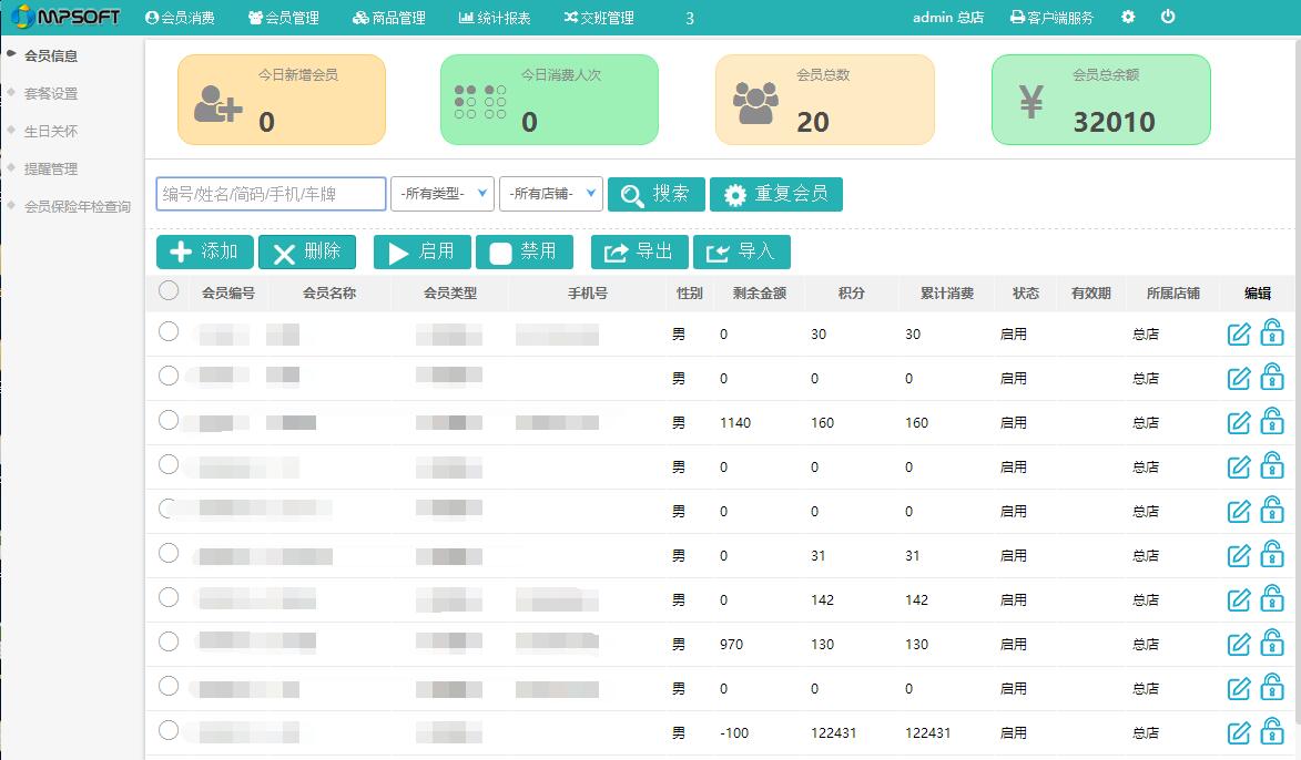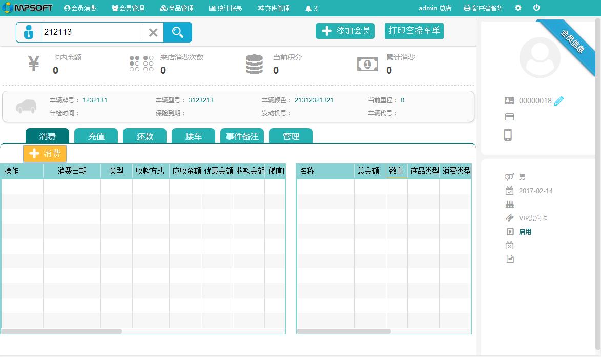美萍汽车美容管理软件是操作简单实用、一款功能专业的管理系统。软件中包括会员管理、会员提醒、会员消息、商品管理、联系反馈、套餐管理、库存管理、库存调拨库、存查询、员工管理、统计报表、微信支付、支付宝支付、微信模版消息等完善的管理模块。适合汽车美容行业管理客户使用。美萍汽车美容管理软件设计定位就是简单、方便、人性化!普通用户不需培训就能很快掌握软件的使用方法。美萍汽车美容管理软件愿意竭尽所能帮助您更加轻松的管理您的公司不管您是公司还是企业,相信我们的软件能让您的管理变得更加的轻松、高效。