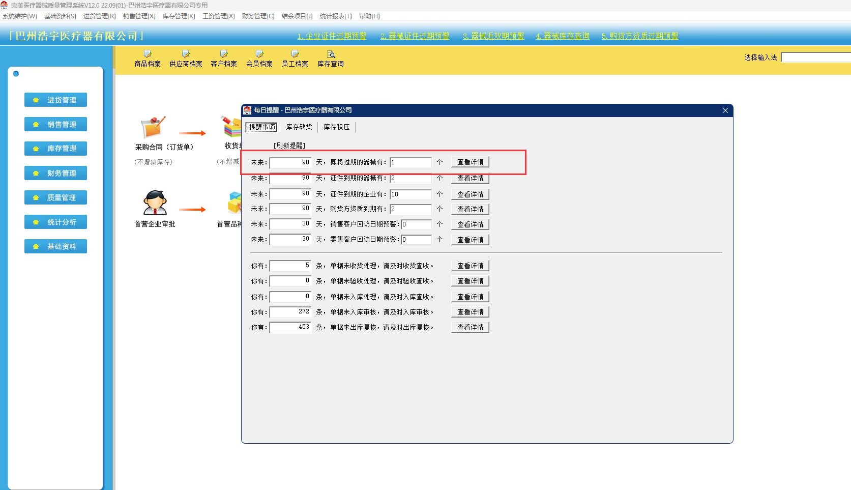 药监验收,采购,验收,销售,出库,证照和产品的近效期预警 (弹框) 不合格品处理,不良反应监测等各个环节,软件功能必须具备