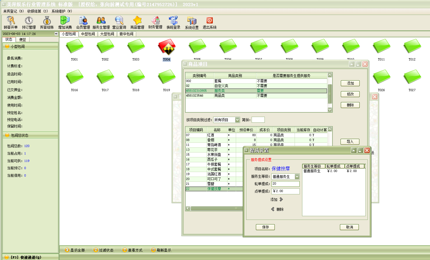 美萍ktv娱乐软件中,比如营销经理的客户包房消费1000 提成10% 怎么可以实现嘛? 比如服务员 卖了10瓶啤酒 每瓶提成2元,可以设置吗?