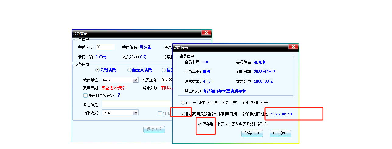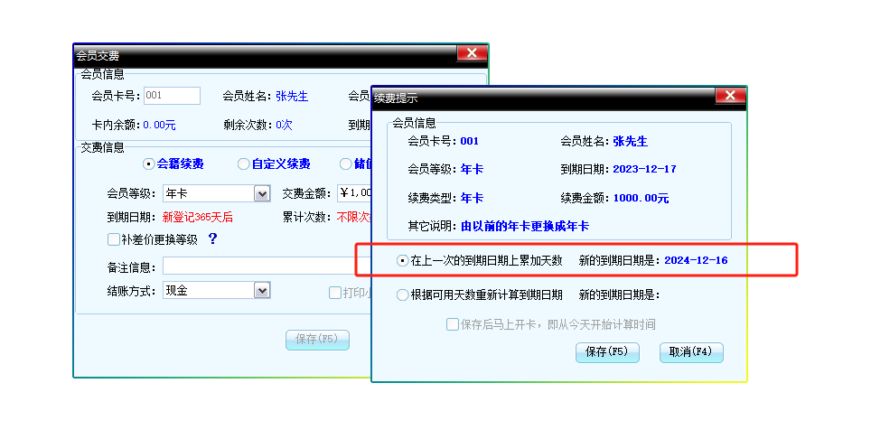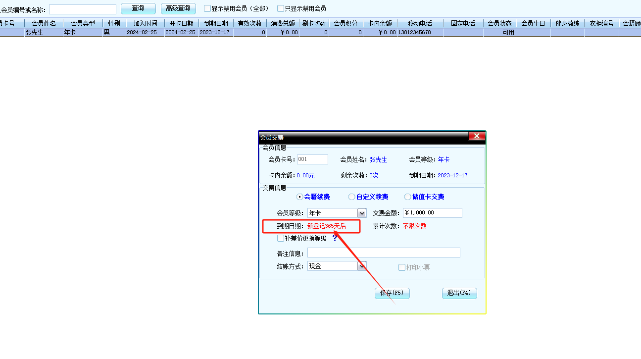 美萍健身房软件,会员充值如何从自定义日期开始自动计算会员到期日?