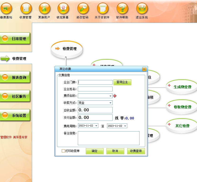 4. 多种支付方式:软件支持多种支付方式,例如现金、银行转账、微信支付、支付宝支付等,为业主提供便利的支付体验。