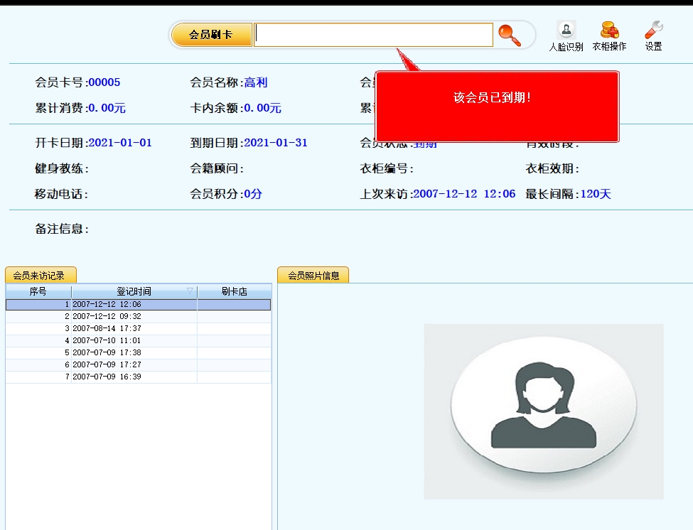 第一:健身房软件具有人脸识别功能,针对采集过照片的会员,可以不带会员卡,直接使用人脸识别技术来刷卡的功能。此功能具有高效,精准识别,自动判断摄像头中是否有人脸,精准找到会员。