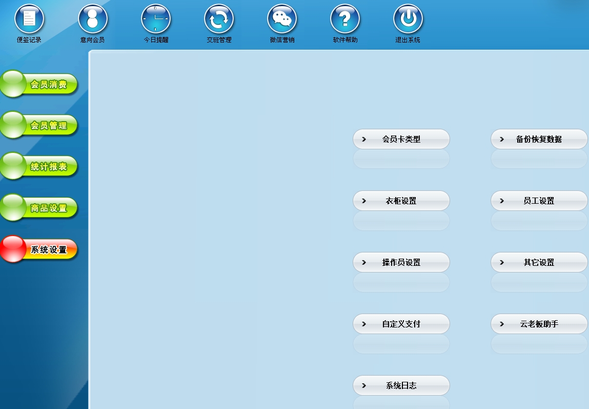 第四:健身房软件对一些基本信息的设置,包括有:会员等级设置、衣柜设置、员工设置、备份恢复数据库、操作员设置、其它设置。