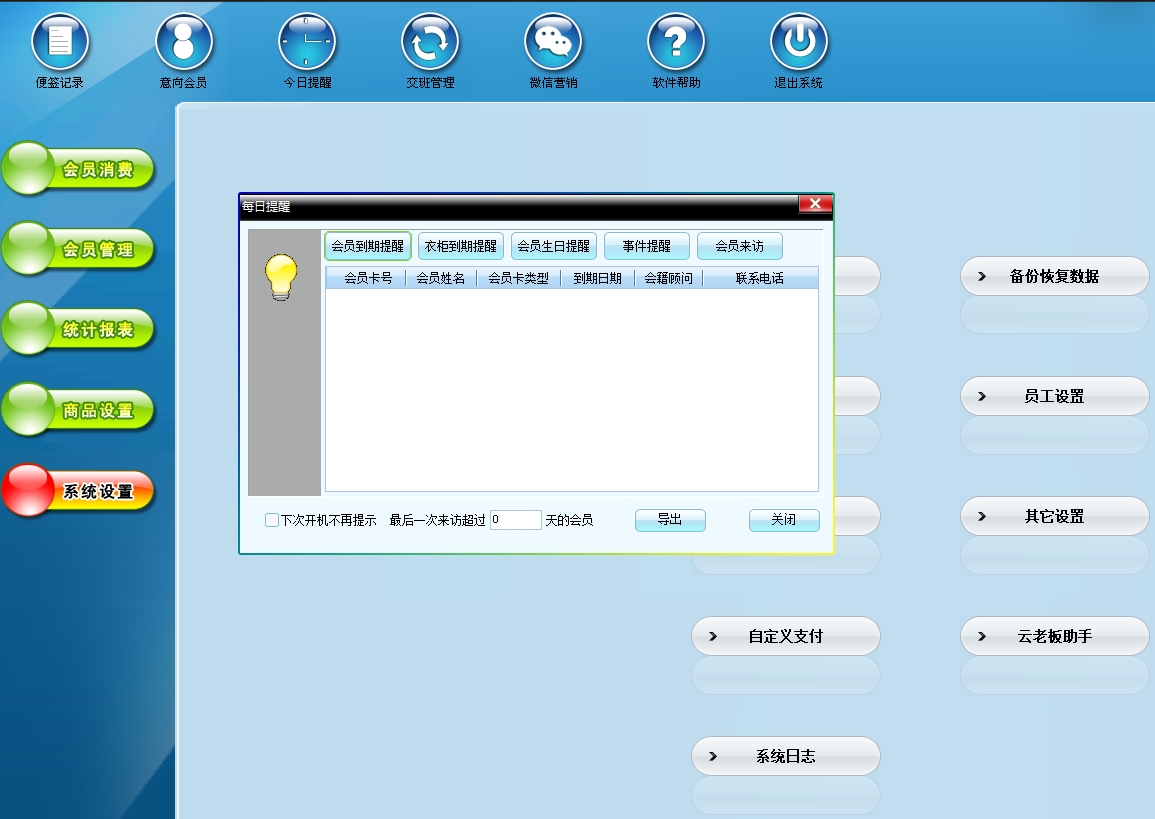 第十二:健身房软件可以对会员的基本信息、充值情况、事件提醒、会员请假、私教管理。