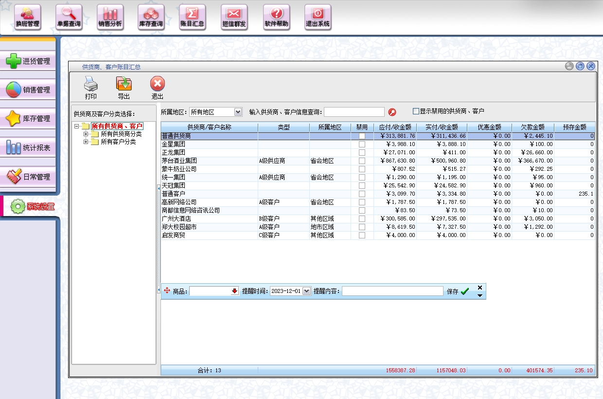 第三:商业进销存软件提供客户往来帐务管理。
