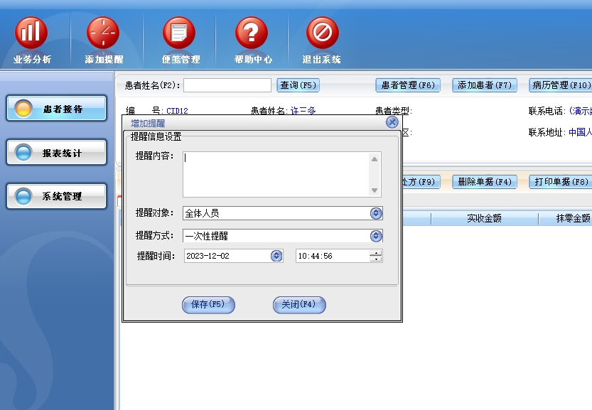 第十二:诊所软件支持患者接待的全部功能需要。