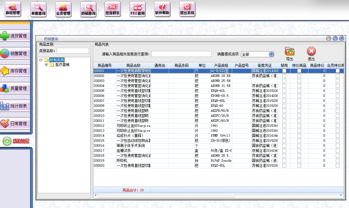 第三:医疗器械质量软件可以进行商品销售,顾客退货,销/退单据和当前库存查询,POS 销售统计,与客户的往来帐务理。