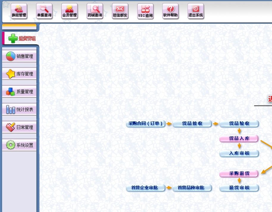 第二:医疗器械质量软件可以进行商品采购入库,采购退货,进/退单据和当前库存查询,与供货商的往来帐务,支持财务管理功能。