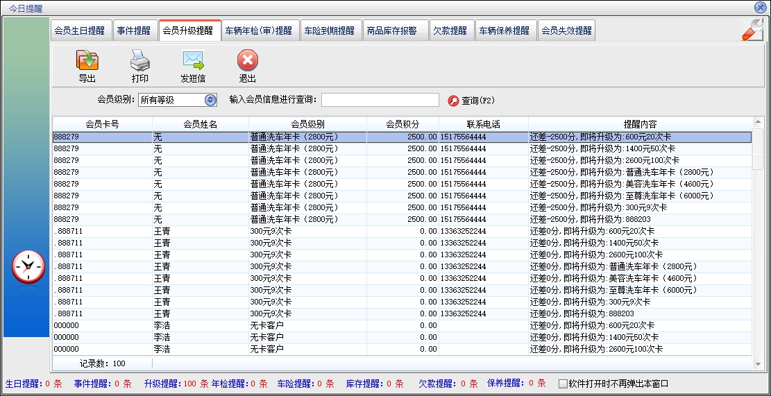 第十二:汽车服务软件可以自动给当天过生日的会员发送生日祝福短消息,过年过节给会员发送节日祝福短消息,以及给需要提醒的会员发送提醒短消息。
