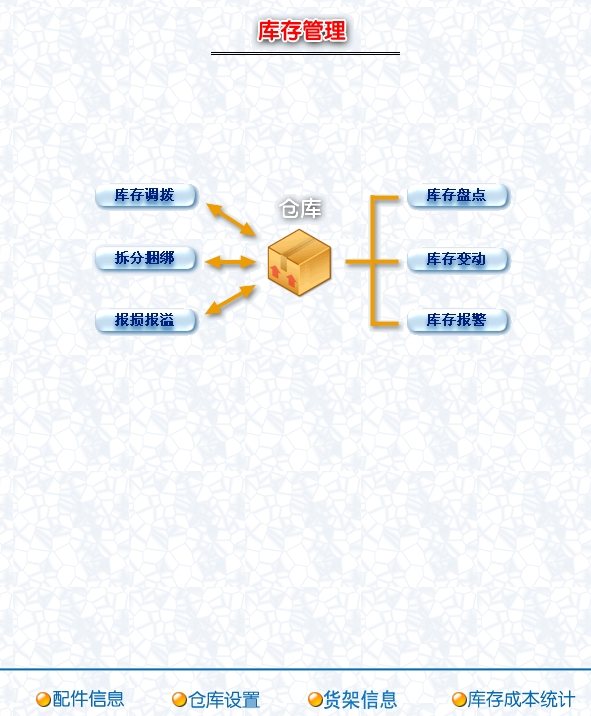 第十二:汽车维修软件(汽修软件)可以进行汽车配件管理,包括库存之间配件调拔,配件的报损溢,配件不同包装的拆分与捆绑,强大的库存盘点功能,库存配件报警查询。