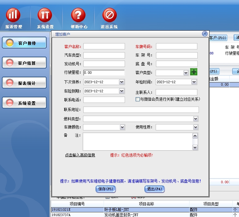 第一:汽车维修软件(汽修软件)可以客户接待,包括添加维修、添加客户。 完成客户下单,调整维修单据配件服务项目。