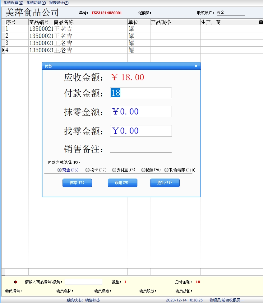 第五:食品销售软件具有强大的统计查询功能,每天的收款情况,都可以清楚的统计出来,随时可打印。