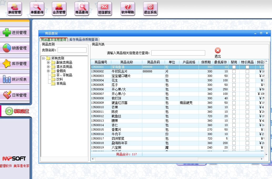 美萍食品销售软件是一款专为食品销售行业打造的管理工具,具有强大而实用的库存管理、财务管理和收银员工管理等功能。该软件根据国家对食品安全监管的相关要求,结合国内广大食品流通企业的经营管理特点专门开发,对食品行业重点关注的保质期,批次等功能进行了特别强化。