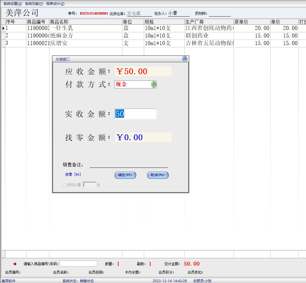 美萍兽药销售管理系统(软件)的主要功能: