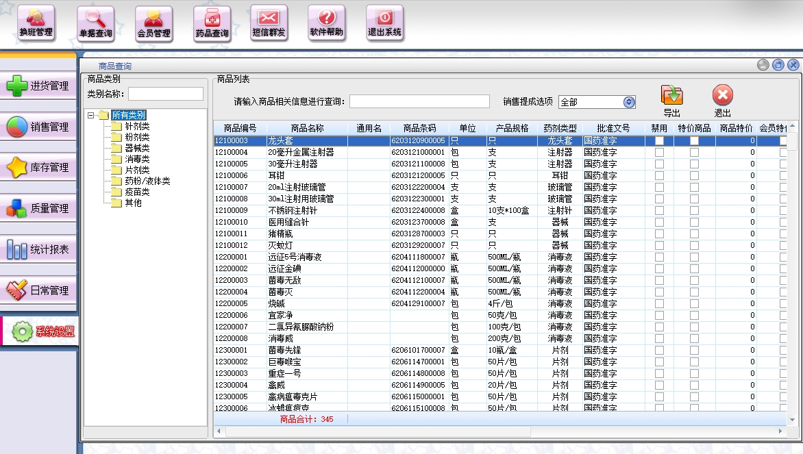 第十一:兽药销售软件支持业务换货,包括库存之间商品调拔,商品的报损溢,强大的库存盘点功能,库存商品报警查询。