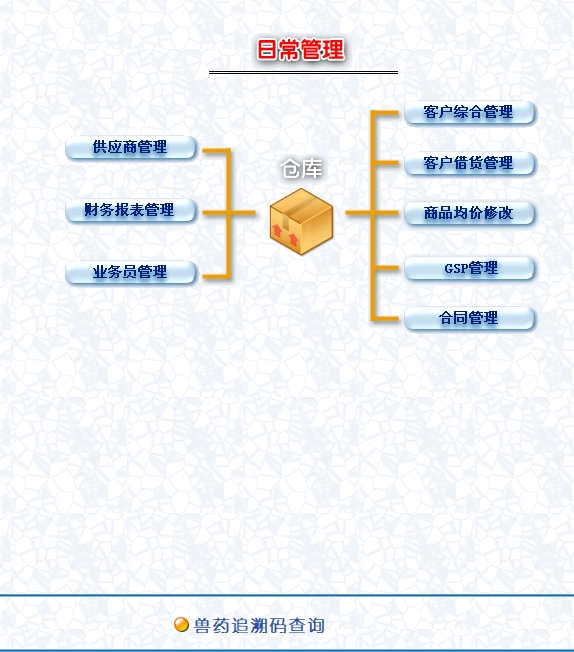 第七:兽药销售软件独创关联数据模式,让所有查询都简单方便,精巧的WEB远程查询功能,让您随时掌握商品采购、业务情况。