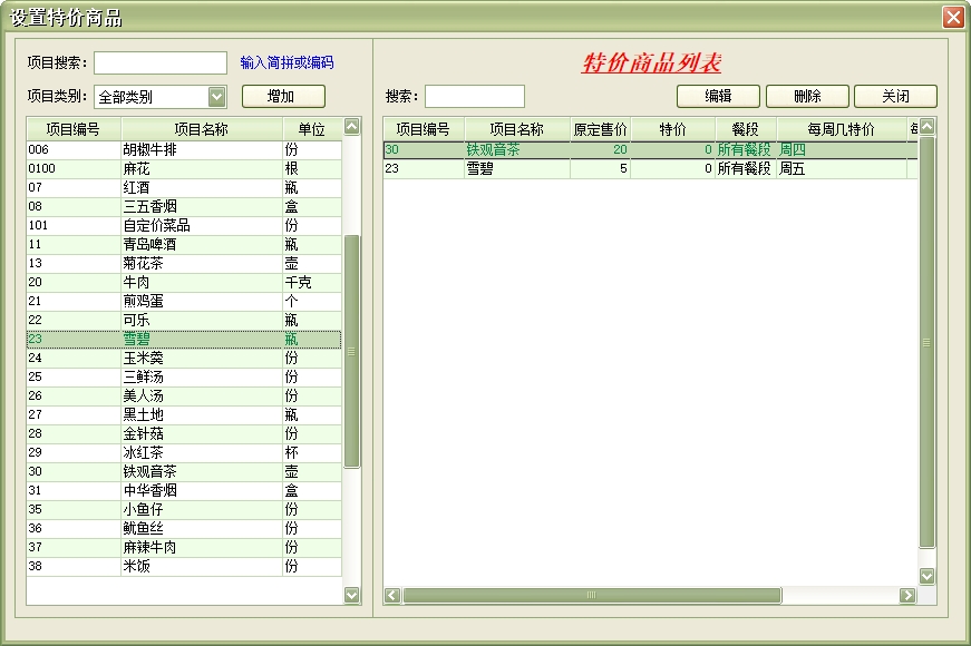 包厢项目:包厢项目也可以理解为包厢的种类(例如可分为豪华包厢、普通包厢等)。具体到某个包厢类型都有其相对应的餐台,而每个餐台就具体到某一来店登记的宾客,一般把餐台提供给一个客人后,在当前客人未退出占用状态前暂时无法提供给另一个客人消费。此项目在系统设置中设置,在宾客开单时使用。