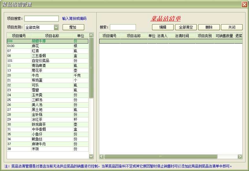 商品项目:是店方提供给宾客的并收取一定费用的项目(例如:服务项目、酒水、香烟等)。此项目在系统设置中设置,在为宾客增加消费时使用。