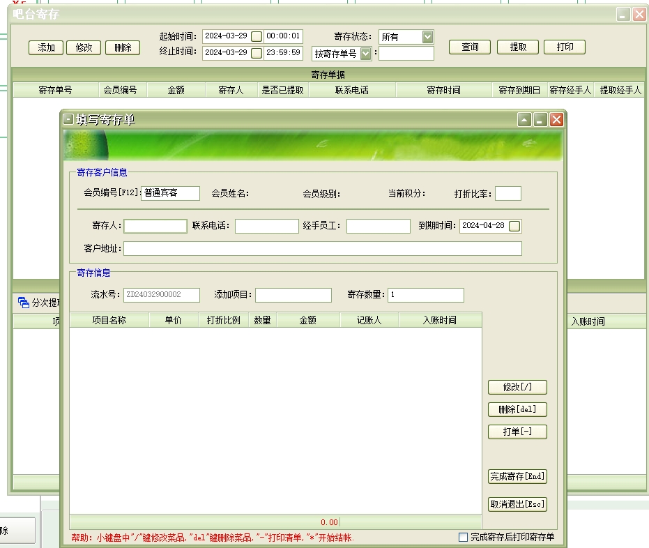 第十一:酒吧软件支持暂挂账单功能:中止当前客人的点菜操作并开始为下一位客人点菜操作,(假如当前客人点了部分后暂时要考虑一下还用不用点其它菜品,这时操作员可以灵活掌握将当前账单暂挂,等下一位客人点完后再取出先前的账单继续点菜。