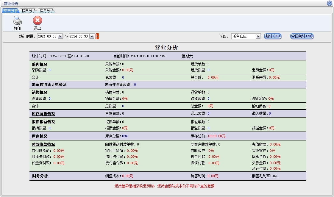 亮点2:查询某个分店的供货商帐务、客户帐务、业务员业务、商品业务排行 、商品业务统计、单据查询、营业分析、库存情况。