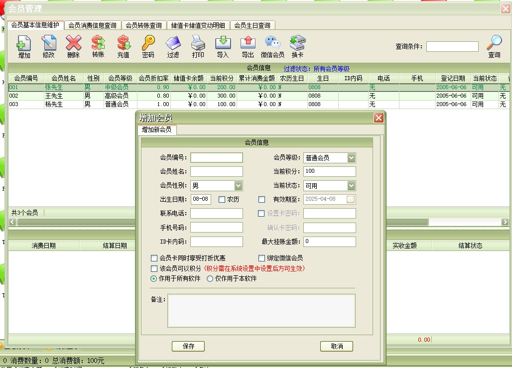 第十三:餐饮软件支持会员设置:会员是本店的VIP客户、签单客户、团会客户、合约客户、其他客户的统称。可设置会员等级(例如:高级会员、中级会员、普通会员等)还可为每种会员等级设置打折比例。